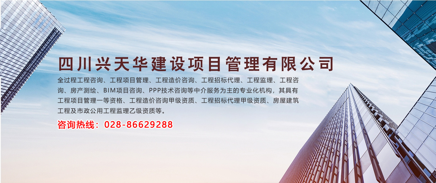 四川興天華建設項目管理有限公司(原名四川天華工程造價咨詢事務所有限公司)成立于2003年12月,是一家以全過程工程咨詢、工程項目管理、工程造價咨詢、工程招標代理、工程監理、工程咨詢、房產測繪、BIM項目咨詢、PPP技術咨詢等中介服務為主的專業化機構,其具有工程項目管理一等資格、工程造價咨詢甲級資質、工程招標代...